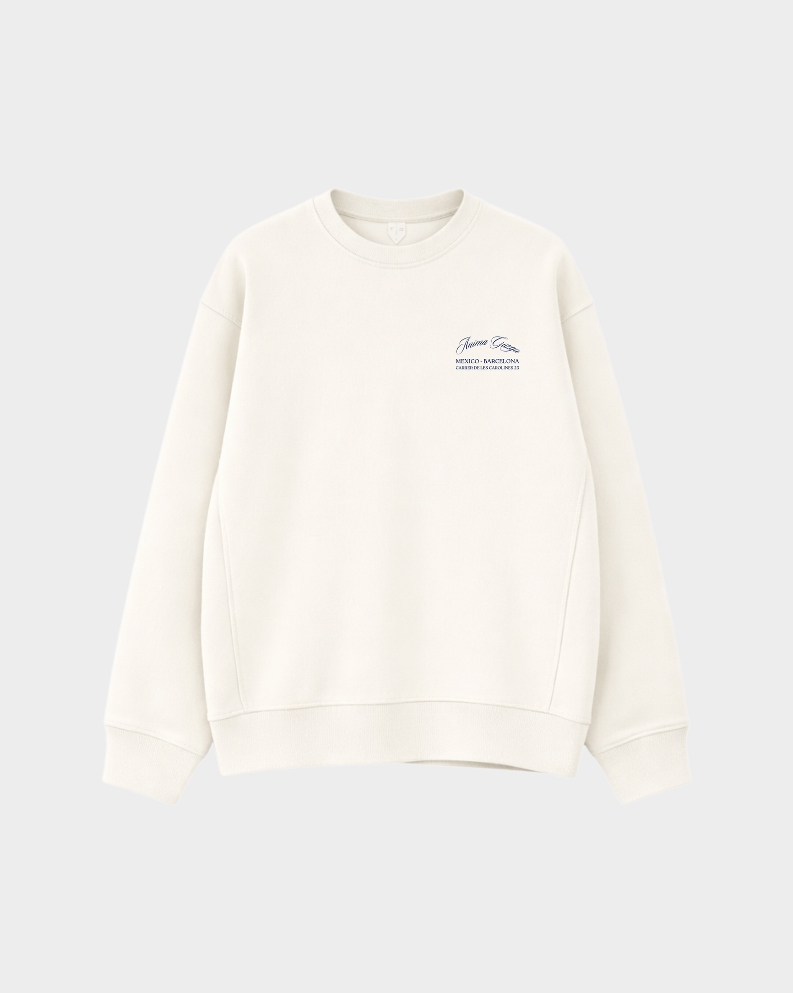 La sudadera unisex Anima Guzga Scorpion está confeccionada en una suave mezcla de algodón color crema. Presenta un estilo relajado con mangas largas, cuello redondo, ribetes acanalados y detalles estampados. Diseñada exclusivamente por Anima Guzga.